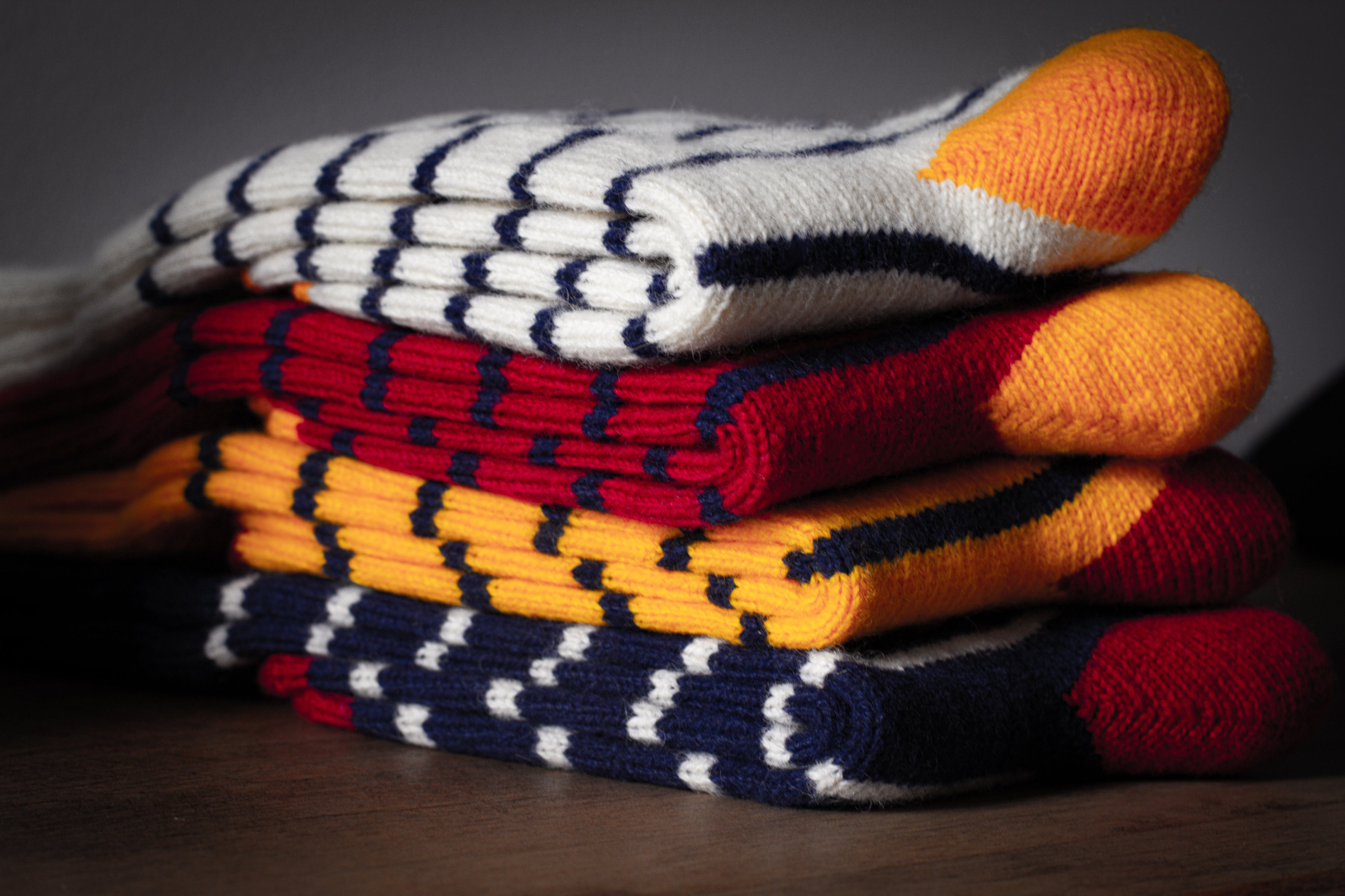Les Bas de Famille sont composés de 75% de laine d'agneau et de 25% de nylon. Le nylon leur permet de conserver leur forme avec le temps et à travers les cycles de lavage.